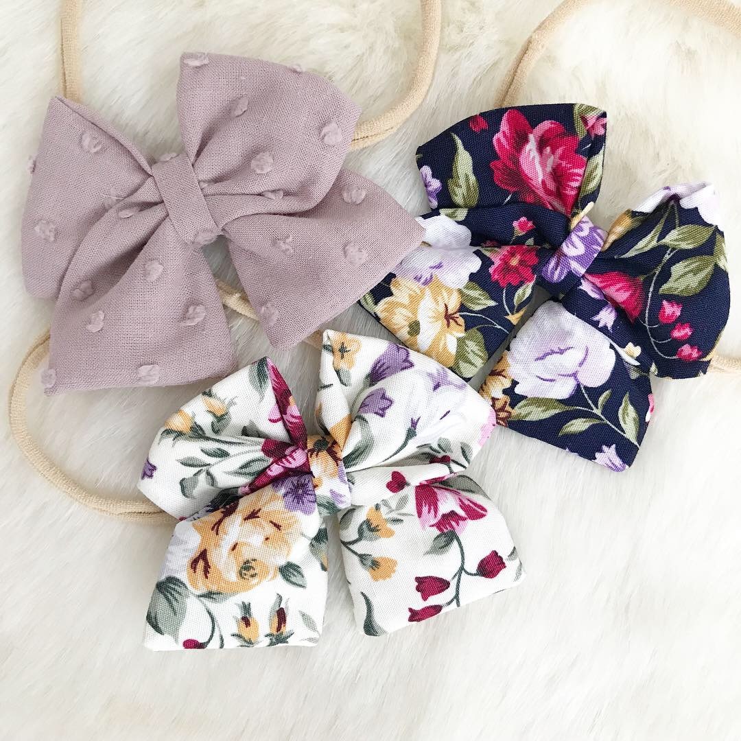 Nydelig håndlaget sløyfehårbånd som passer både baby og større pike. Lengde på sløyfen er 6 cm. Farge: blomstret/sort. One size/strikket er elastisk. Material: 100% bomull. Designet og produsert i EU.