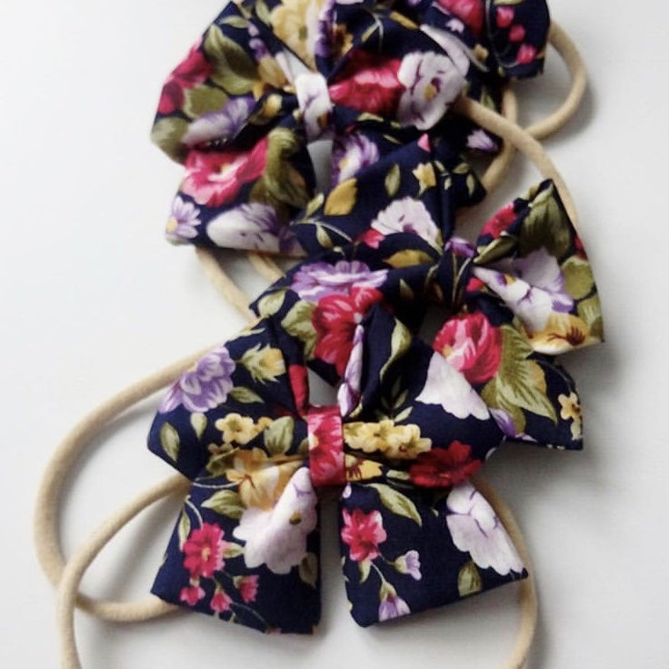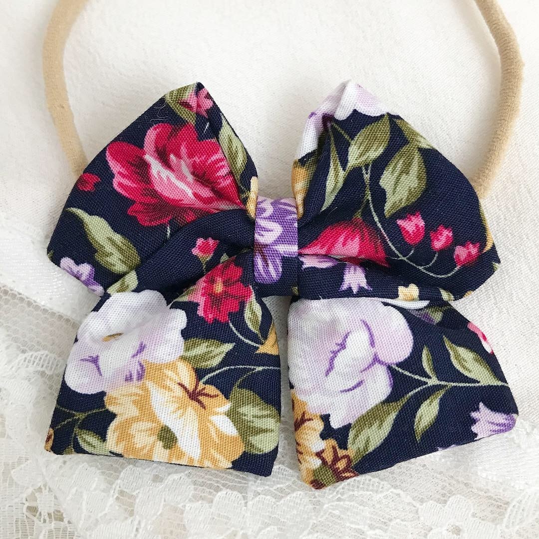 Bomull hårbånd med sløyfe, blomstret/sort, 6cm